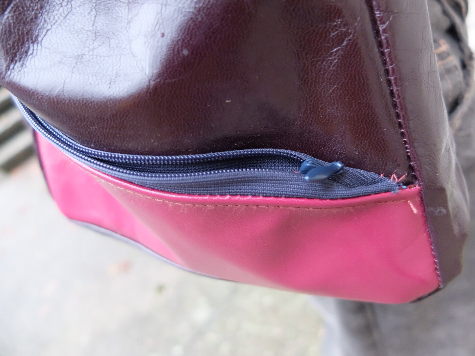 Sacoche forme carrée en cuir bordeaux foncé et fuchsia