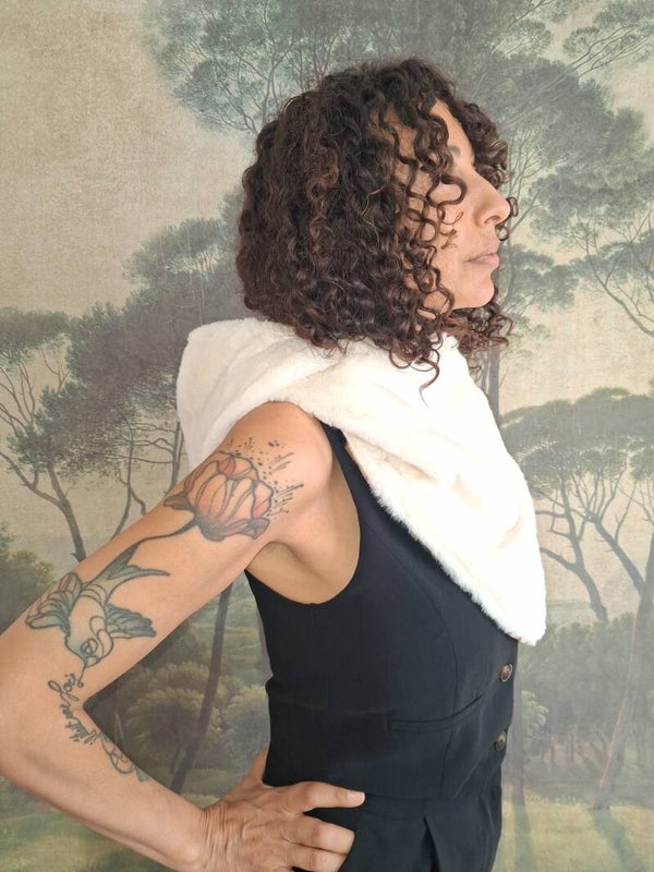 Intérieur et extérieur très doux. Agréable à porter. Fermeture boutons pressions